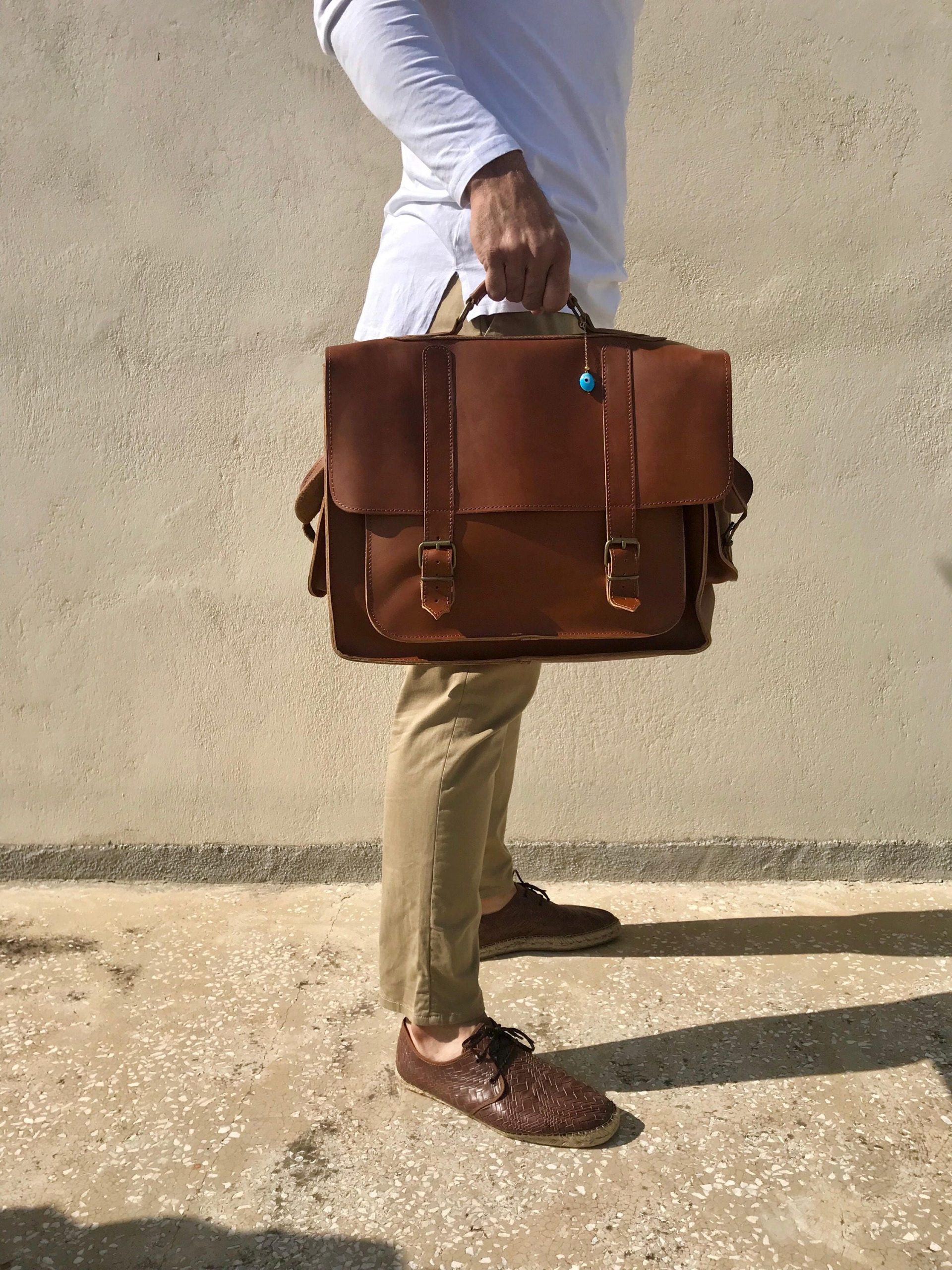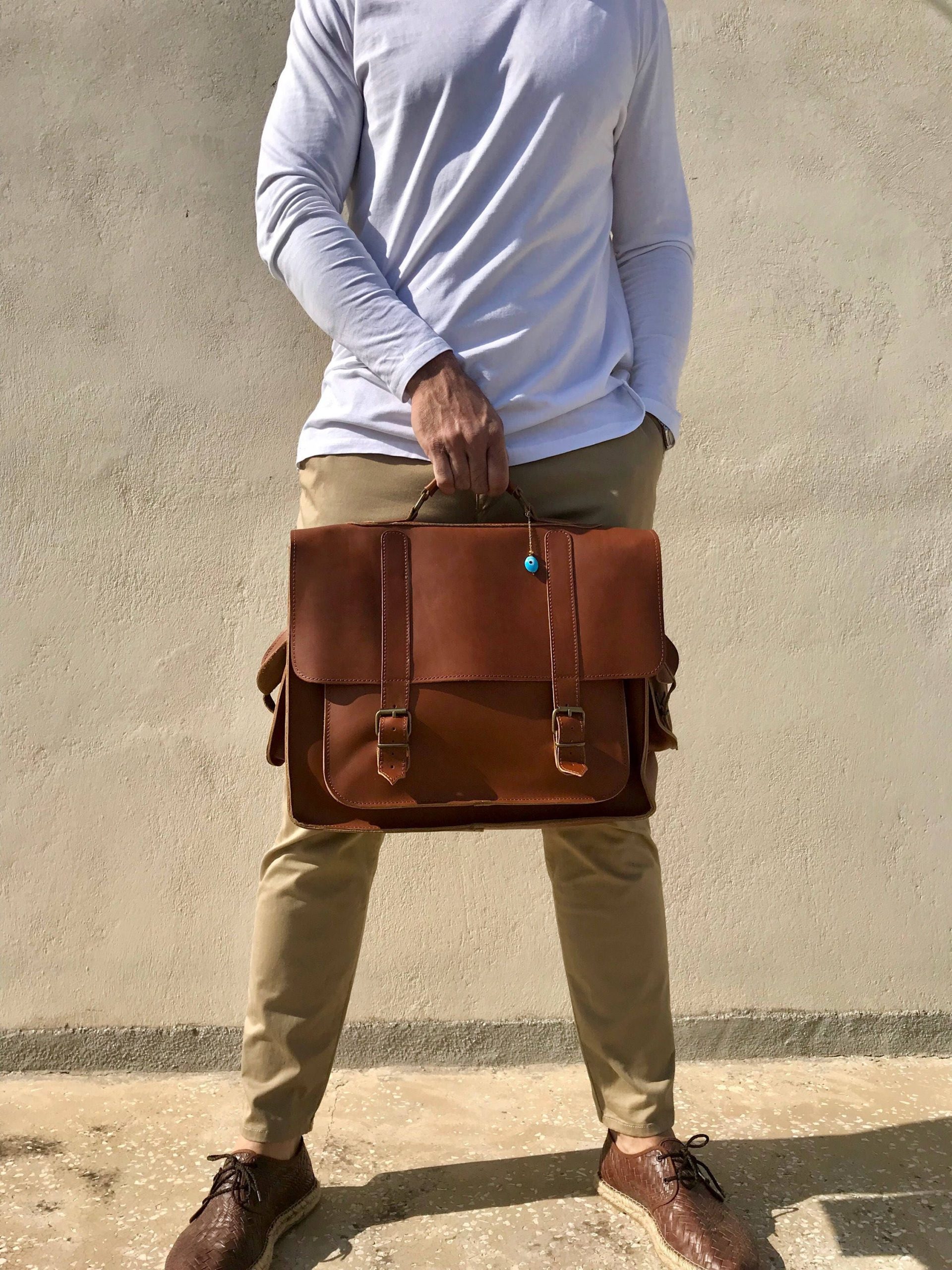 Introducing the us Store’s exclusive handmade leather messenger bag, crafted with utmost care from 100% genuine brown leather. This exquisite bag features a unique key ring accent, adding a touch of individuality. Perfectly sized to accommodate a 17” laptop, it combines functionality with style. Elevate your accessories collection and make a statement with this remarkable messenger bag, available exclusively at us Store on Etsy.