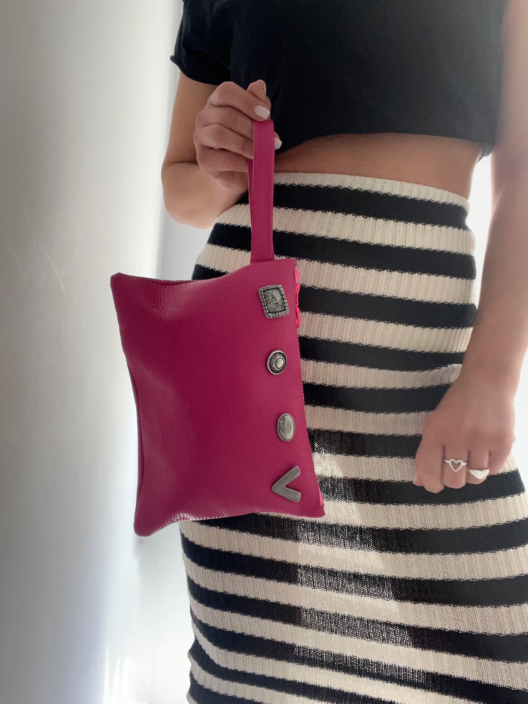 Introducing our exquisite Handmade Leather Clutch that’s crafted from top-quality Full Grain Leather. Its stunning Fuchsia color and sleek silver buckles add a unique touch to its design. Featuring a spacious interior, this versatile piece doubles as a small bag and a large wallet, making it perfect for everyday use. It is a timeless piece that will instantly elevate your style, grab yours exclusively at our Store.